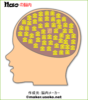 なっ、何これ!!?・・・か、金?そうか、、、俺の頭は金でいっぱいだったのか・・・ ―ん?良く見ると真ん中に「遊」の文字を発見!う~ん・・・真ん中に一個だけ遊びってどうなの?^^; この結果が嘘であってほしいと願うばかりです・・・まぁ謎は深まりますが、是非みんなもこの機会に挑戦してみましょう♪